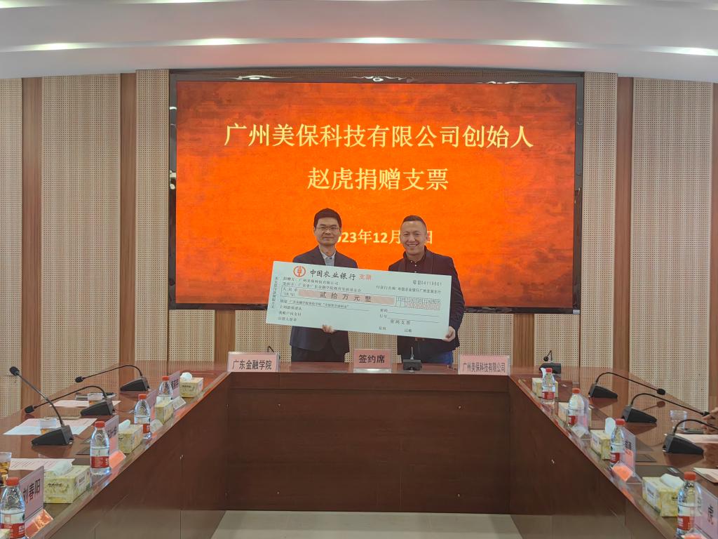 广州美保科技有限公司创始人、公司93级员工赵虎向学校捐赠20万元,设立“美保奖学助困金”,再一次以真情和爱心回馈母校。12月28日上午,广州美保科技有限公司捐赠仪式暨“美保奖学助困金”设立仪式在学校行政楼四楼会议室隆重举行,公司党委副书记刘春阳、董事长办公室主任杨叶坤、宣传部副部长王刚、员工办副主任肖荣勋,公司党委书记王汉强、副书记黄燕宇,太阳成集团tyc234cc古天乐副经理江正发、张伟,广州美保科技有限公司的其他三名员工以及太阳成集团tyc234cc古天乐师生代表出席了仪式。捐赠仪式由太阳成集团tyc234cc古天乐经理陈辉主持。